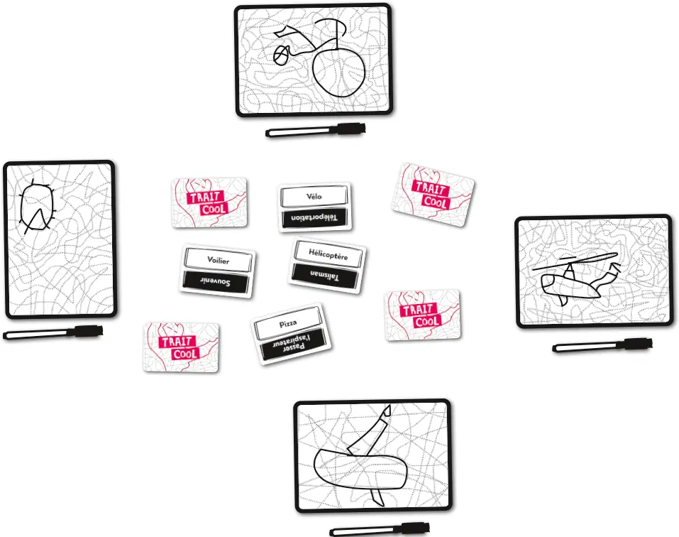 Dans Trait Cool, laissez libre cours à votre créativité… mais uniquement sur des lignes pointillées ! Tous les joueurs dessinent en simultané, puis tentent de deviner les créations des autres pour repérer les intrus et marquer un maximum de points. Un jeu rapide, drôle et interactif, où bluff, observation et imagination sont vos meilleures armes. Chaque partie est unique : plus les dessins deviennent absurdes, plus les éclats de rire et les retournements de situation s’enchaînent.